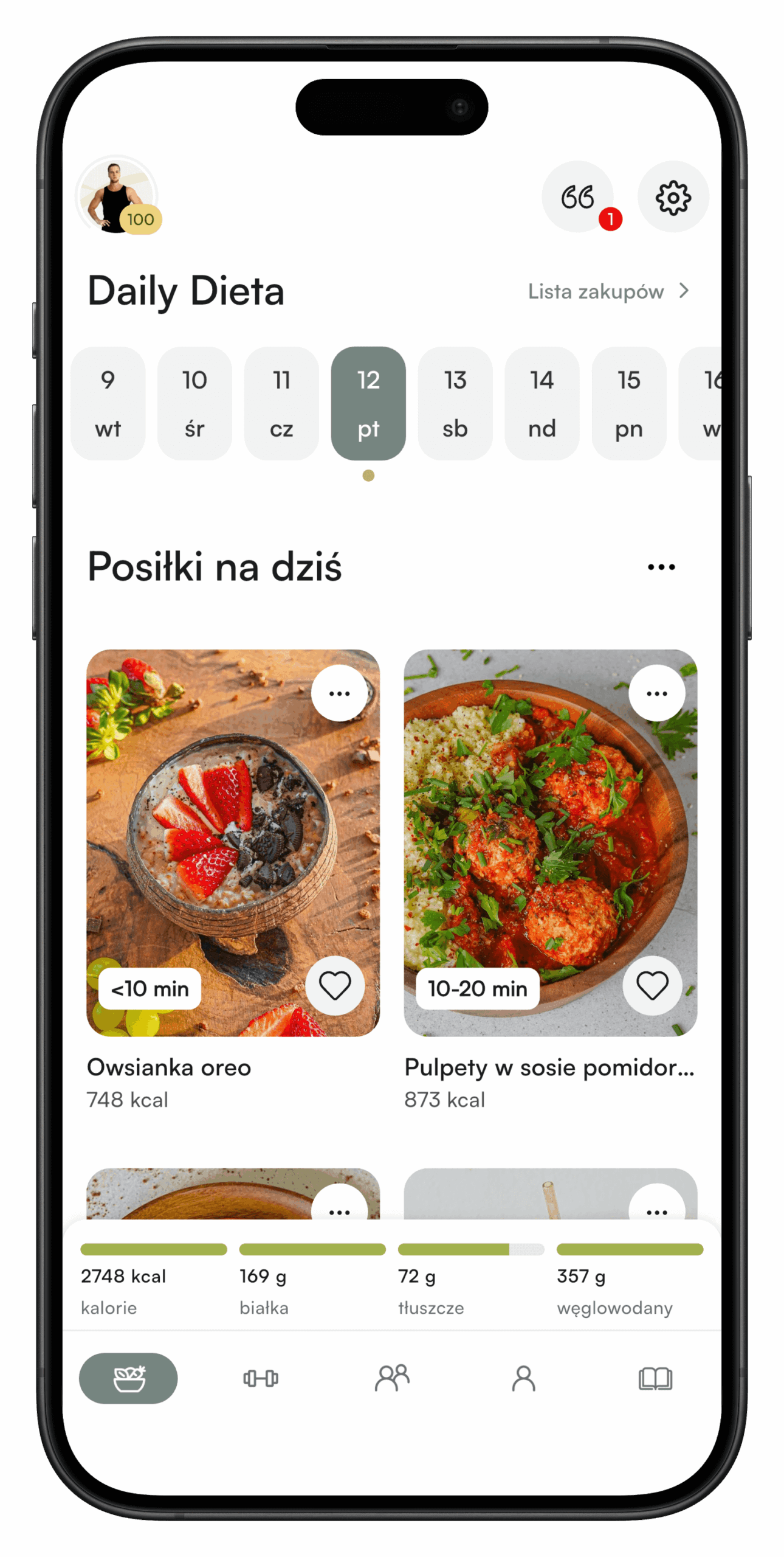 Kaloryczność i makroskładniki dynamicznie dopasowują się do Twoich postępów. W trakcie redukcji tkanki tłuszczowej lub budowy masy mięśniowej dieta reaguje na zmiany w Twoim ciele.